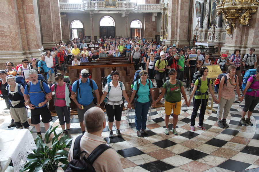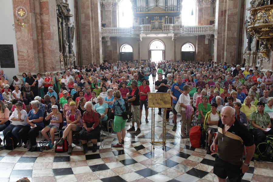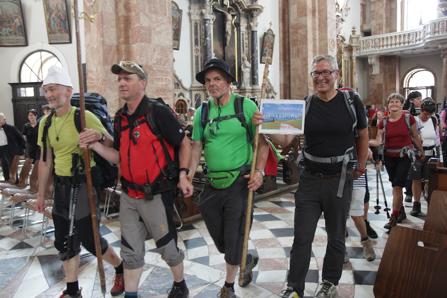 Am 25 Juli, dem Tag des hl. Jakobus, trafen an die 700 Pilger aus allen Richtungen am Domplatz in Innsbruck ein. Sie waren anlässlich 50 Jahre Diözese Innsbruck aufgebrochen, um großteils in mehreren Tagesetappen zum Dom zu pilgern. Die größte Gruppe kam aus Osttirol, mehr als 100 Pilger wanderten in sechs Tagen vom Defereggental über die Zillertaler Alpen nach Innsbruck. Eine Gruppe mit jungen Menschen durchwanderte gemeinsam mit Bischof Manfred Scheuer und Jugendseelsorger Wolfgang Meixner das Karwendel, andere wiederum stareten in Brixen in Südtirol oder trafen mit dem Fahrrad am Domplatz ein. Bischof Manfred Scheuer zelebrierte mit den Pilgerinnen und Pilgern im voll besetzen Dom zum Abschluss der Pilgerwanderung einen Gottesdienst.